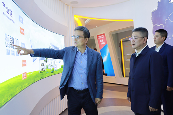 郎文榮一行先后參觀公司展廳、廠區(qū)及數(shù)字化車間,詳細了解公司發(fā)展歷程、企業(yè)規(guī)模、產品特性、綠色生產情況等。他對公司良好的發(fā)展態(tài)勢表示肯定,并指出福斯特作為光伏封裝膠膜的龍頭企業(yè),要以技術創(chuàng)新賦能企業(yè)綠色發(fā)展,打造臨安新材料產業(yè)發(fā)展新標桿。