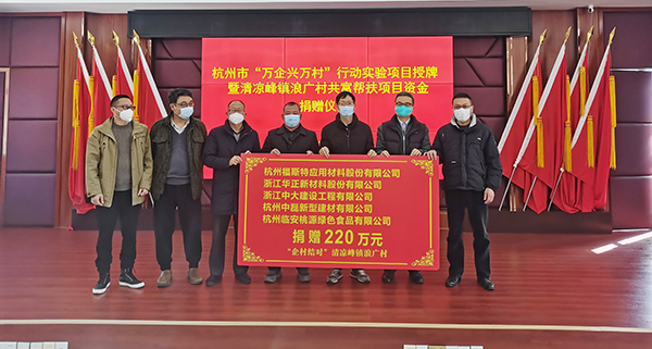 12月21日,杭州市“萬企興萬村”行動實驗項目授牌暨清涼峰鎮(zhèn)浪廣村共富幫扶項目資金捐贈儀式在清涼峰鎮(zhèn)政府舉行。杭州市工商聯(lián)黨組成員、二級巡視員毛???,區(qū)委常委、統(tǒng)戰(zhàn)部長陳娜,區(qū)人大原副主任、慈善總會會長羅石榮,區(qū)工商聯(lián)黨組書記樓金山,清涼峰鎮(zhèn)黨委書記錢波,區(qū)工商聯(lián)主席、杭州福斯特應用材料股份有限公司董事長林建華等參加活動。