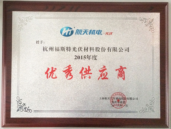 福斯特榮獲航天機電2015年度優(yōu)秀供應商獎獎牌