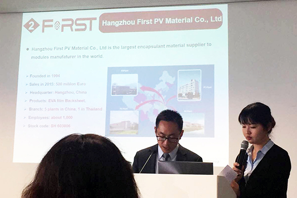 浙江省商務(wù)廳與德中貿(mào)易聯(lián)合會舉辦的浙江-德國光伏企業(yè)對接會上,福斯特進(jìn)行重點(diǎn)推介