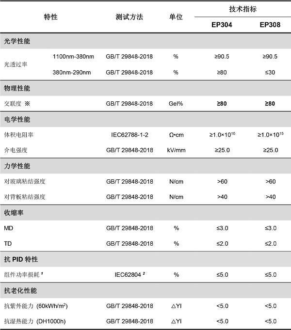 F·RST EP304 & EP308產(chǎn)品是一款共擠型封裝膠膜產(chǎn)品,由EVA和POE采用物理共擠壓合而成,具有長效的雙面電池抗PID性能,可幫助P型或N型雙面電池常規(guī)和雙玻組件通過85oC,RH 85%,-1500Vdc,192h的PID測試。同時(shí),EP系列膠膜兼具優(yōu)異的粘結(jié)性能、透光性能和長期耐候性能。